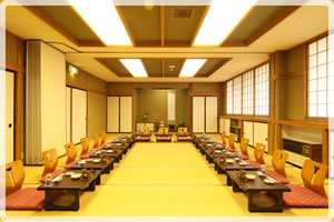 当館1階にあるお食事処です。朝食はこちらでお出しいたします。また、お部屋出し以外の御夕食のお客様はこちらでお召し上がりいただきます。